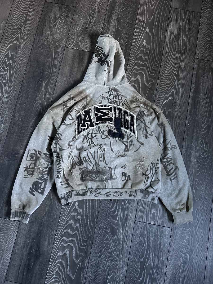 Balenciaga skater graffiti distressed zip up hoodie grey