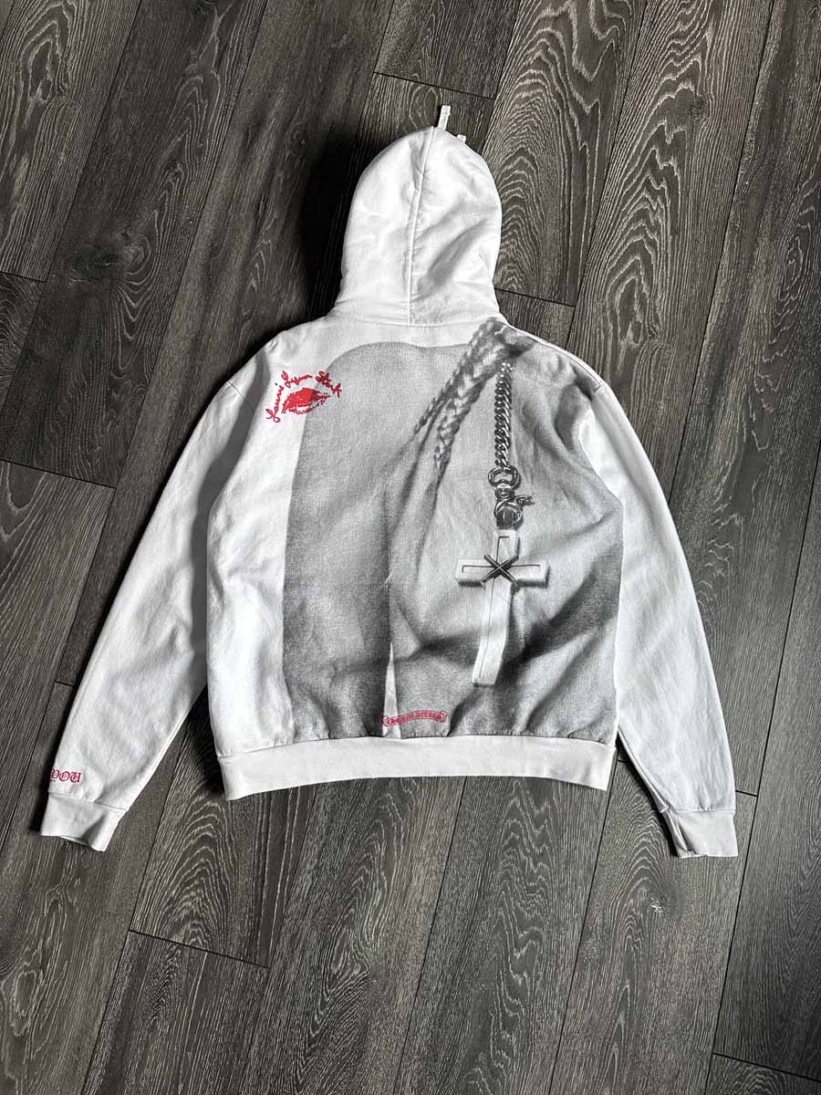 Chrome Hearts vertical logo white hoodie