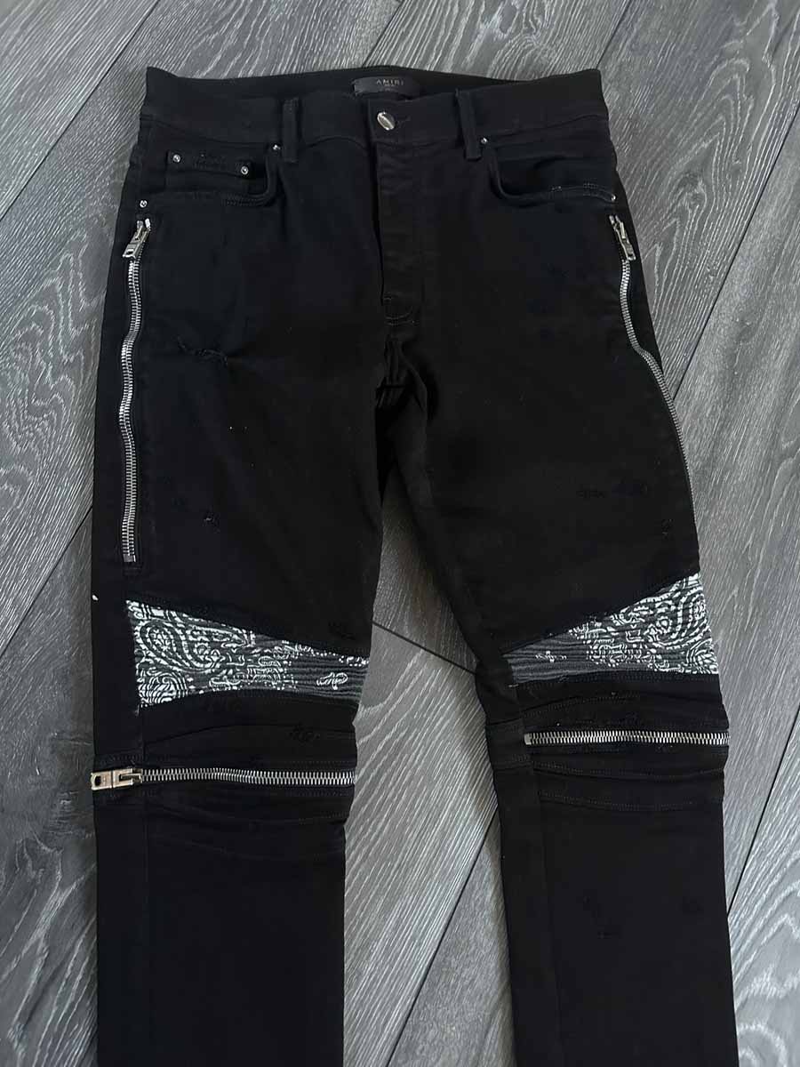 Amiri mx2 bandana paisley biker zipper jeans