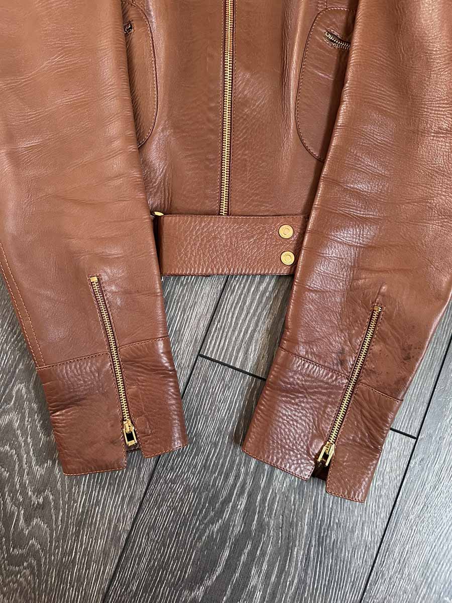 Great condition - small blemish on left sleeve. Rare variation of runway jacket from SS99 season, made out of butter-soft leather with gold gucci details.