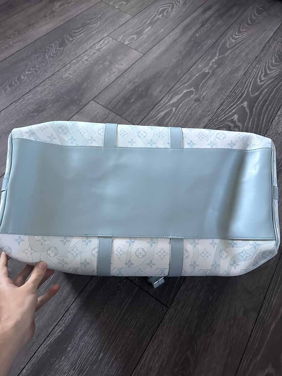 Rare piece in very good condition - small scratch on bottom and stain, probably removable, inside, including strap, poignet, tag, lock, keys