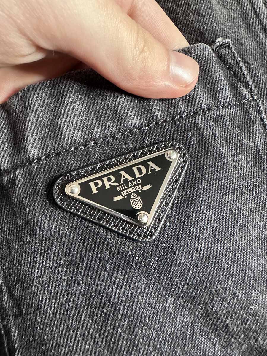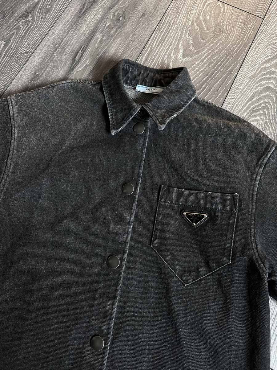 Prada triangle logo button-up denim shirt