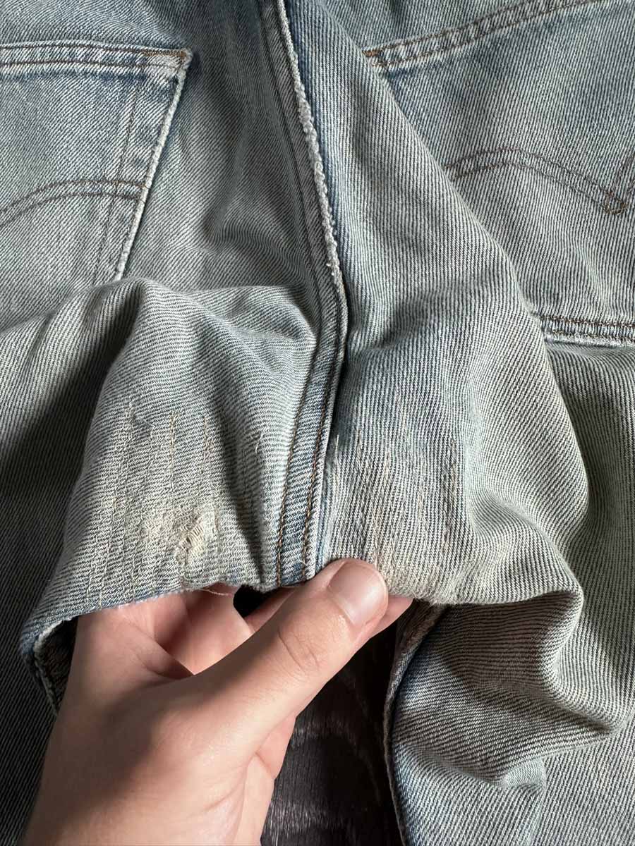 Vintage Levis 501 90s repaired faded blue jeans
